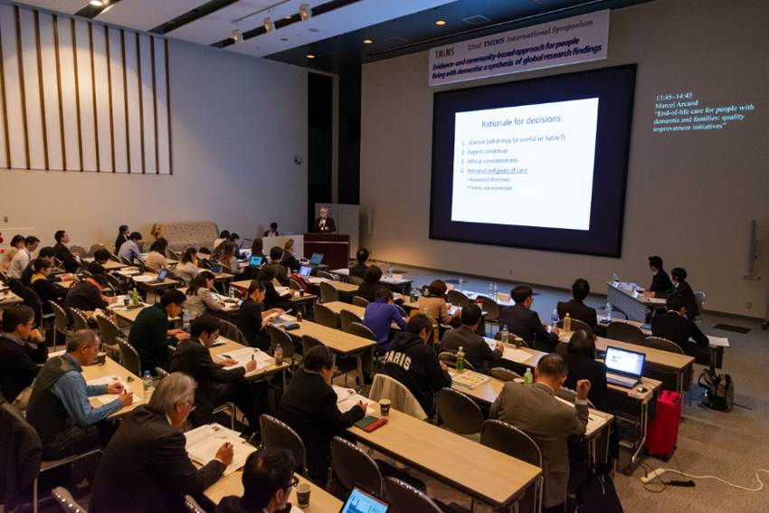 マーシャル・アーカンド先生は、カナダのシャーブルック大学で家庭医学分野の教授を務められてきました。臨床実践を長く続け、高齢者のケアに携わられてきました。もう1つの役割として、他の医師やその他のケアに携わる方の教育をしてきました。2003年にはカナダのアルツハイマー病協会から助成を受け、認知症の人の家族に対する調査を行っています。その結果をふまえ、家族や従事者に必要となる情報をまとめたガイドブックを開発しました。このガイドブックはカナダ以外でも、いろいろな国に翻訳されています。講演では、終末期のケアと家族支援のあり方について、ご紹介いただきました。