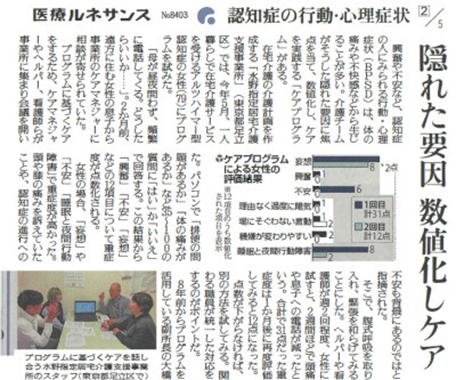 2024年12月12日 BPSD 読売新聞「日本版BPSDケアプログラム」の在宅介護での取り組みが紹介されました 2024年12月12日 読売新聞で足立区インストラクターの大橋義男さんの水野指定居宅介護支援事業所での「日本版BPSDケアプログラム」の実践が紹介されました。 読売新聞_医療ルネサンス_2024.12.12.pdf